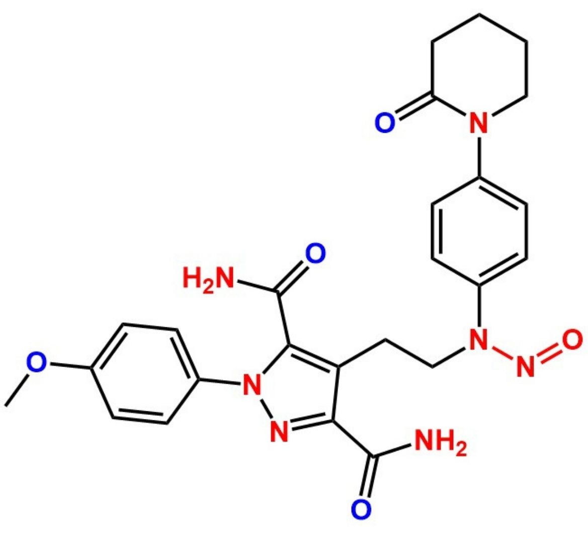 Chemical Name: 6-(4-((5-amino-5-oxopentyl)(nitroso)amino)phenyl)-1-(4-methoxyphenyl)-7-oxo-4,5,6,7-tetrahydro-1H-pyrazolo[3,4-c]pyridine-3-carboxamide.